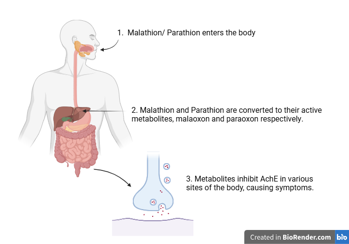 Malathion/parathion can enter the body via inhalation, dermal or oral exposure.4,5